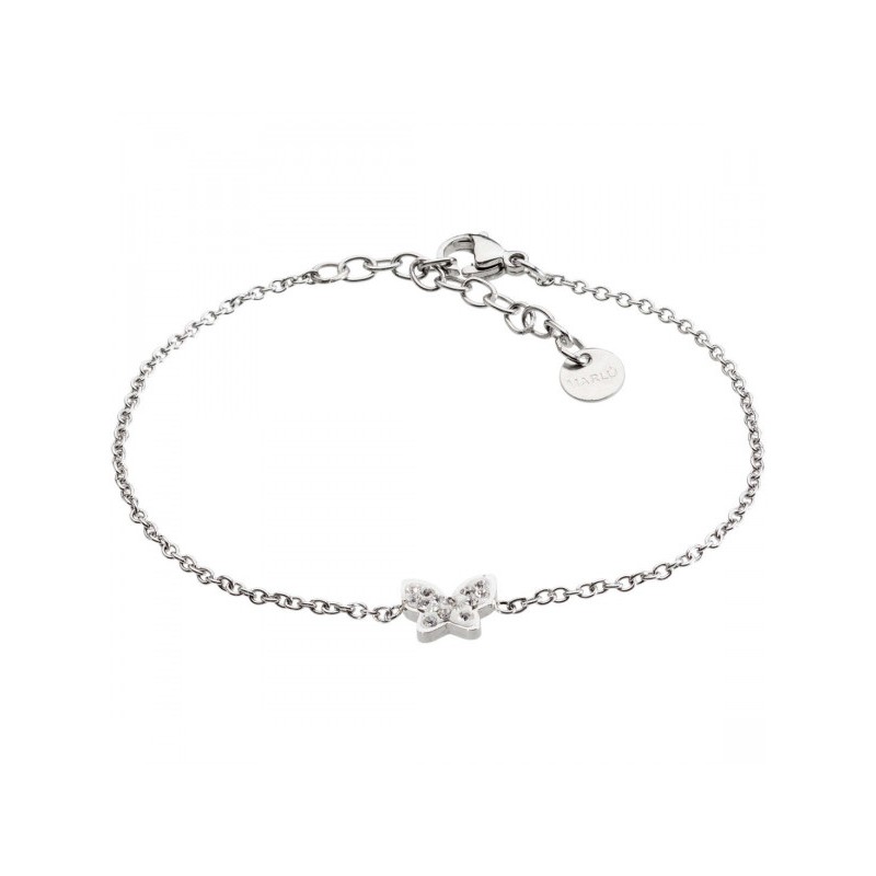 Bracciale in acciaio con farfalla e cristalli, lunghezza 16 cm con estensione di 3 cm Collezione: Time To.