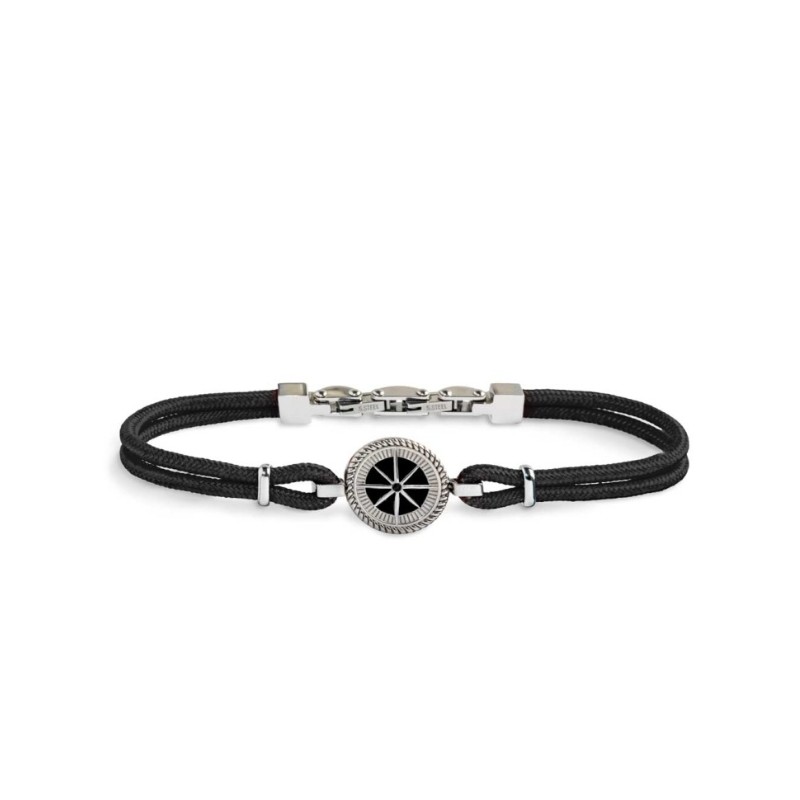 BRACCIALE UOMO MARLU' CON CORDINO NERO IN POLIESTERE CON ROSA DEI VENTI CON SMALTO