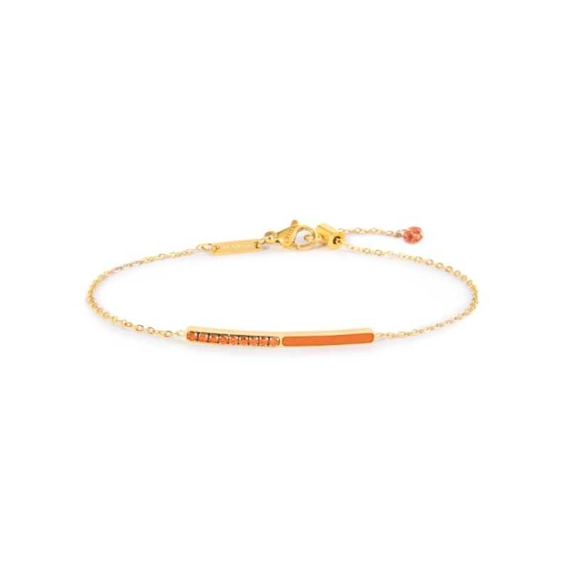 Bracciale con centrale con cubic zirconia di diametro 1,70 mm e con smalto. Lunghezza totale 19 cm, regolabile tramite cursore scorrevole. Logo tag Marlù incisa.