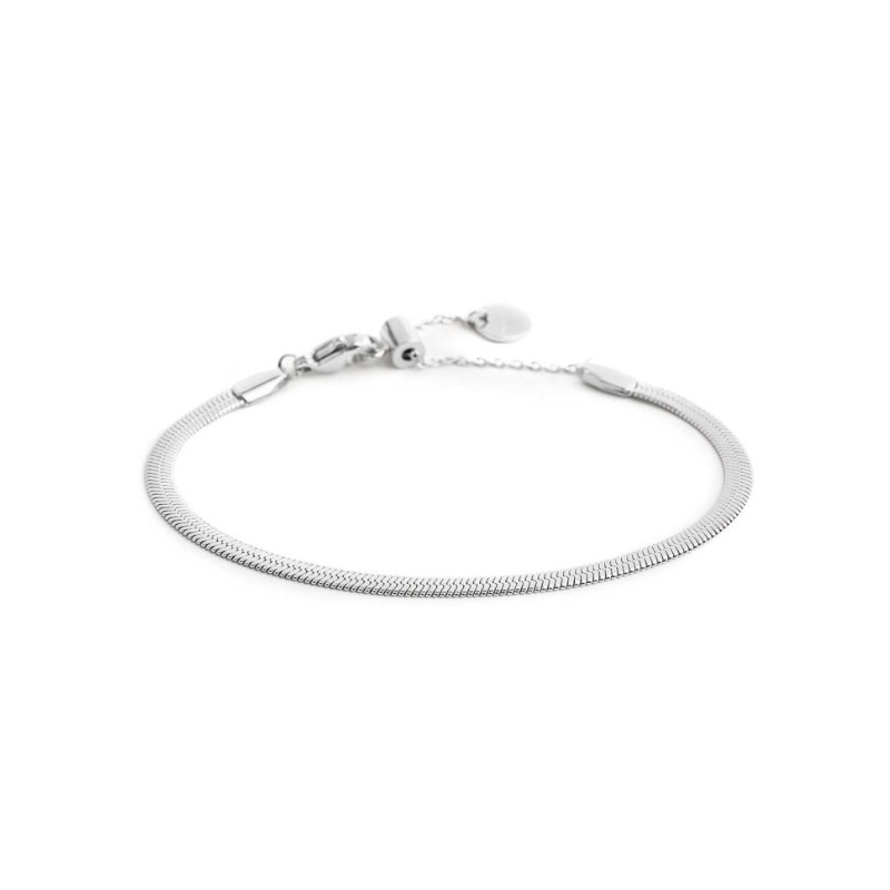 Bracciale con catena snake con spessore 0,60 mm. Lunghezza totale 19 cm regolabile tramite cursore da 19 cm a 15 cm. Marlù logo tag presente all' estremità.