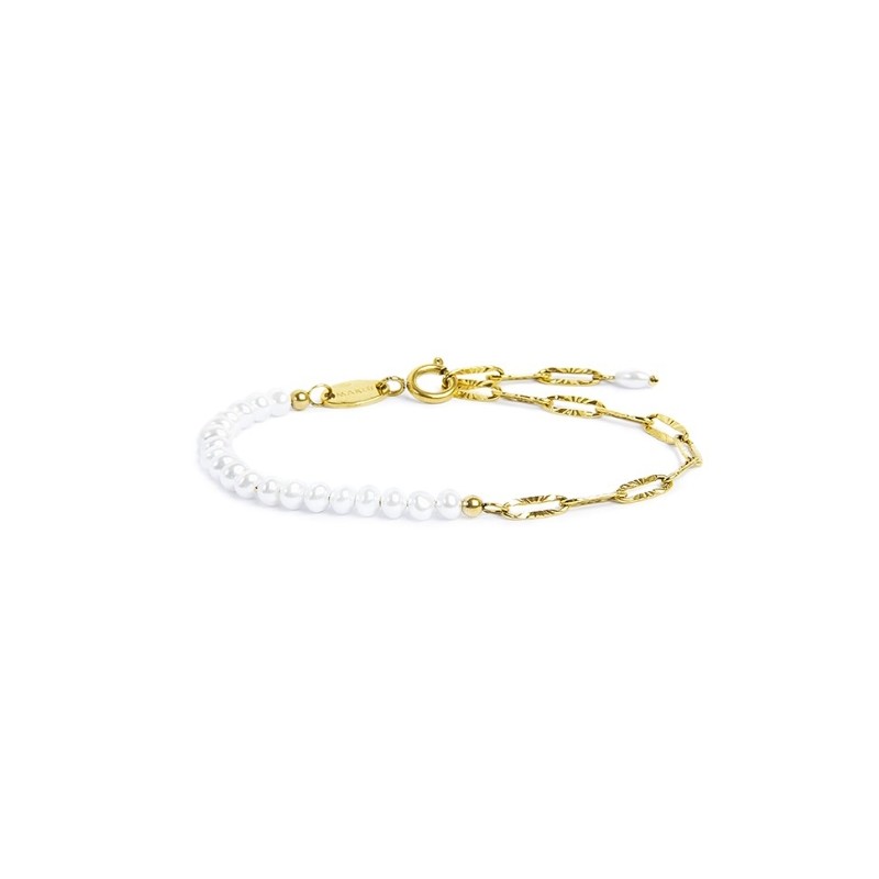 BRACCIALE MARLU' DONNA IN ACCIAIO DORATO CON CATENA FIGARO E PERLE BIANCHE IRREGOLARI RIVESTITE