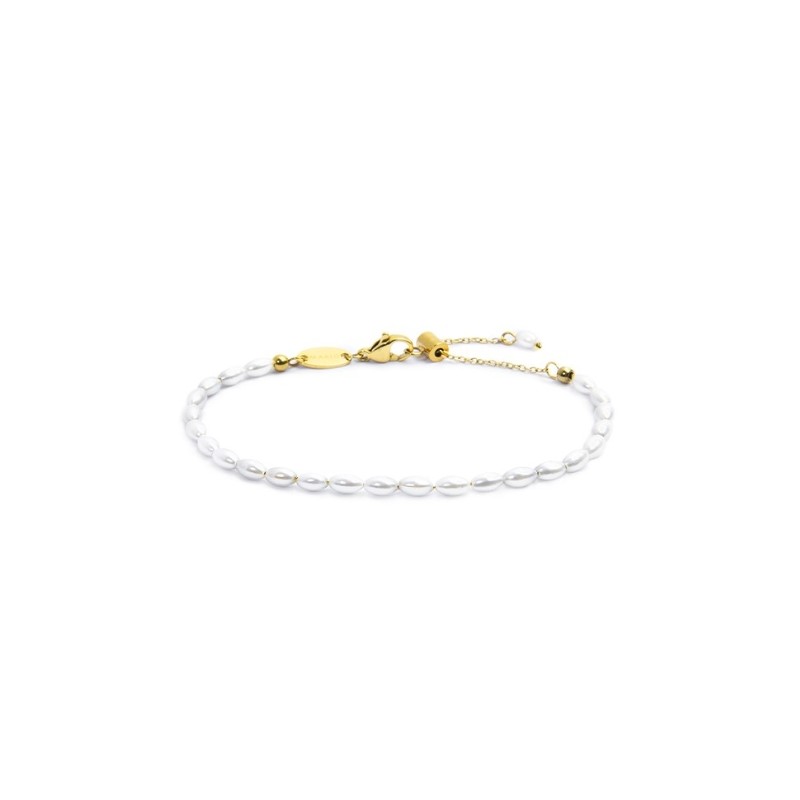 BRACCIALE MARLU IN ACCIAIO DORATO CON CATENA E PERLE OVALI BIANCHE RIVESTITE