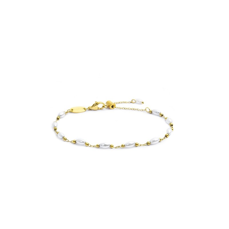 BRACCIALE MARLU' ACCIAIO DORATO CON PERLE IRREGOLARI BIANCHE RIVESTITE E SFERE IN ACCIAIO