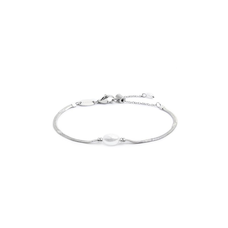 BRACCIALE MARLU' CON CATENA SNAKE PIATTA CON PERLA CENTRALE OVALE