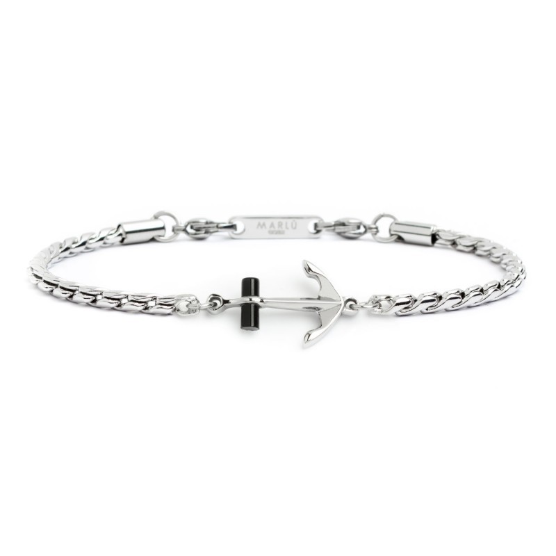 Bracciale in acciaio catena corda, con ancora e pietra composita turchese. Lunghezza 19/21 cm, regolabile, Marlù tag removibile. Collezione: Man Class 26