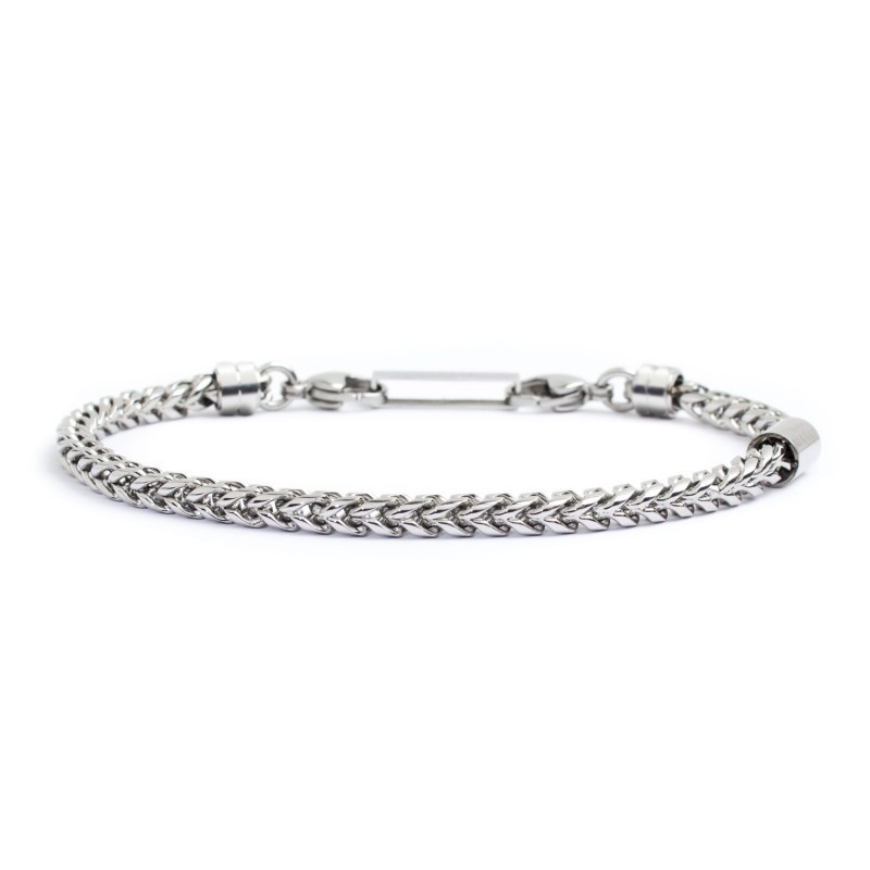 Bracciale in acciaio lucido con catena fishbone chain 4 mm. Lunghezza 19/21 cm regolabile Collezione : Man Trendy 28