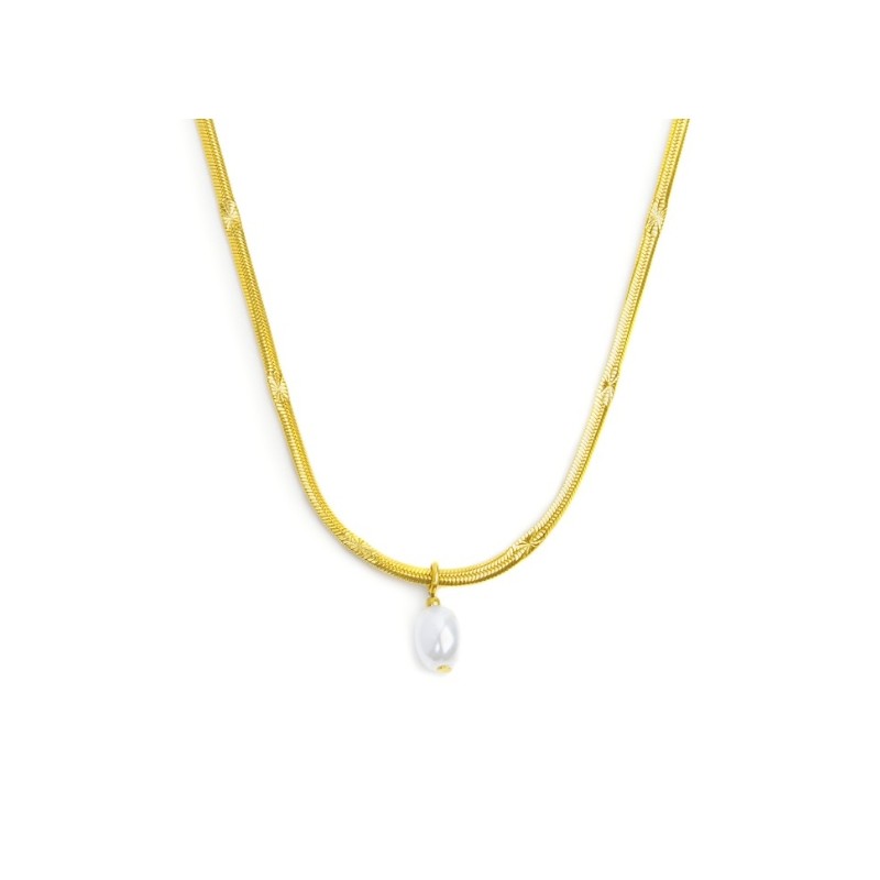 COLLANA MARLU' IN ACCIAIO DORATO CON CATENA SNAKE PIATTA AL CENTRO PERLA PENDENTE OVALE RIVESTITA