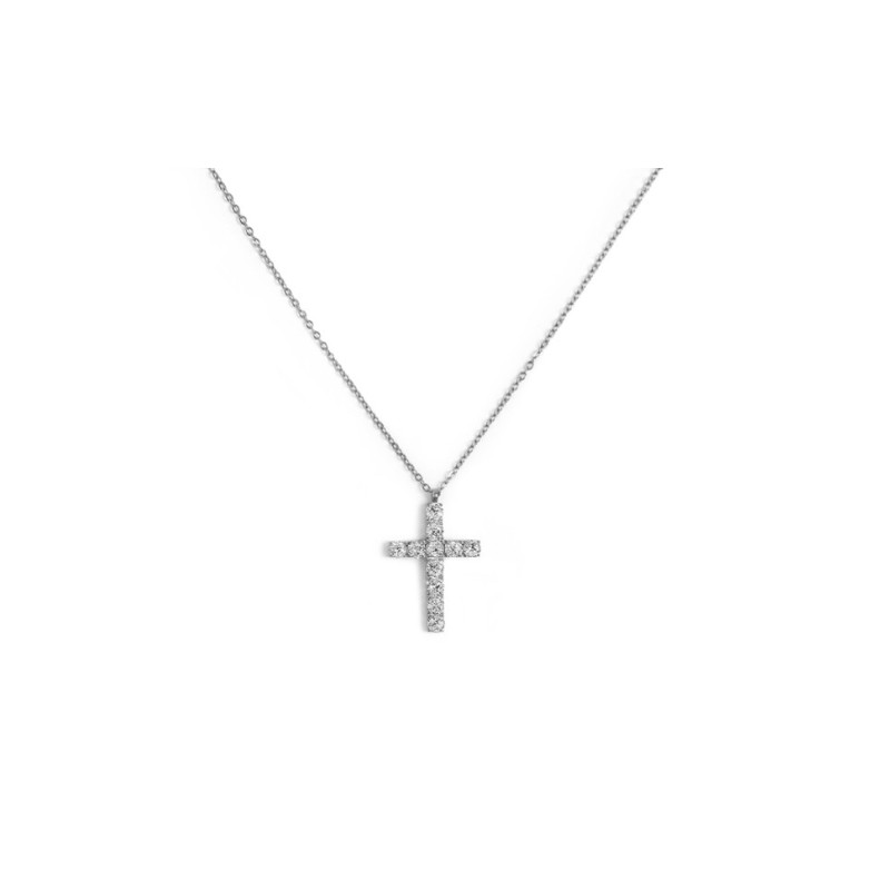 COLLANA IN ACCIAIO CON CROCE E ZIRCONI BIANCHI