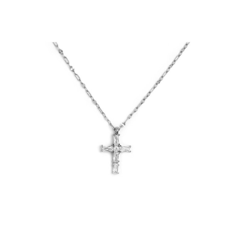 COLLANA IN ACCIAIO CON CROCE CON CRISTALLI BAGUETTE