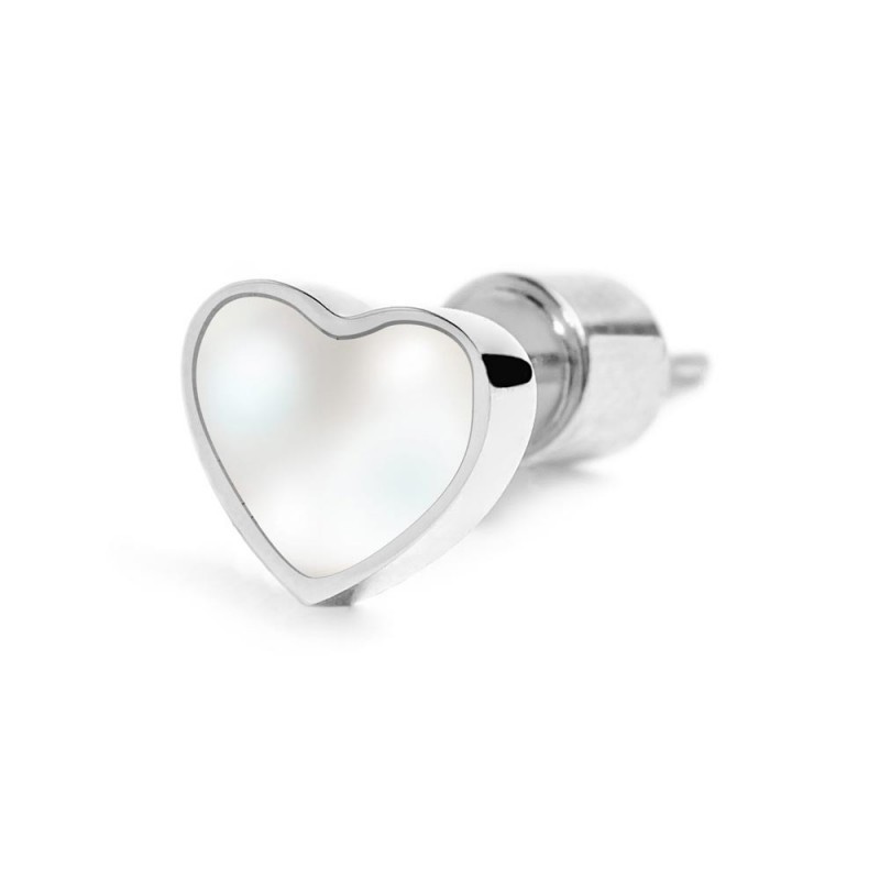 Mono orecchino in acciaio con cuore con madreperla sulla superficie frontale. Collezione: NMC27